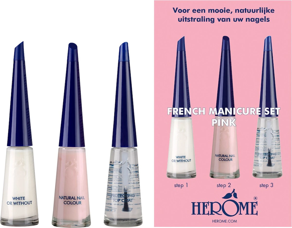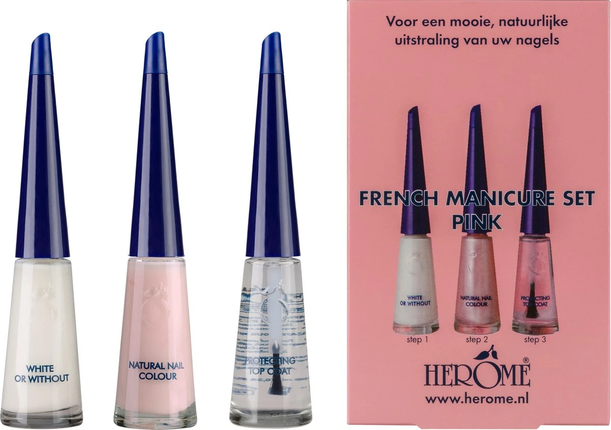 Versterkt je natuurlijke schoonheid door het aanzetten van het wit van je nagel in combinatie met een fris roze nagelbed. De French Manicure Set Pink is een klassieker onder de nagelproducten.