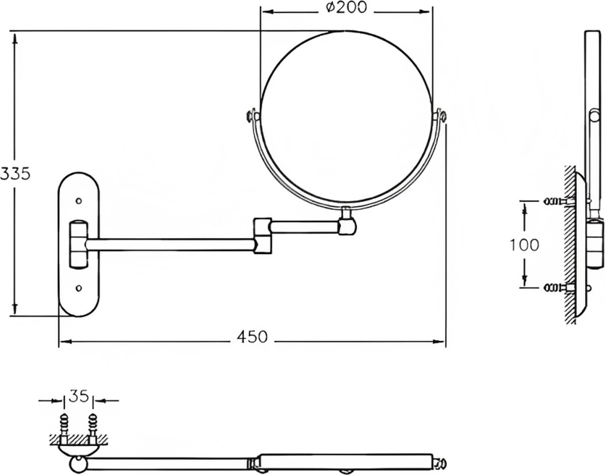 Dankzij het simpele ophangsysteem monteer je de spiegel eenvoudig aan je badkamermuur. Het is dus ook mogelijk om de spiegel te installeren op een tegelmuur. Het product neemt ook weinig ruimte in beslag. Dit komt doordat de spiegel een inklapbare arm heeft, dus ideaal voor kamers met beperkte ruimte. De verstelbare arm kun je kantelen, en de spiegel kun je 360° draaien om de juiste positie te vinden. De spiegel is 360° horizontaal en verticaal roteerbaar.